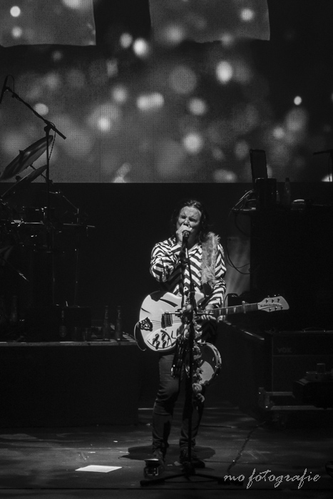Doch nicht erst beim grandiosen Finale des F.E.A.R.-Epos „The new kings“ steht das überwiegend fachkundige Publikum (sprich: Marillion-Fans) auf und spendete stehende Overtionen. H bedankt sich artig, weiß er doch, dass es gar nicht so einfach ist, sein A*** aus den gemütlichen Theatersesseln hoch zu bekommen. Vorteil Theater: Das mitunter düstere Werk der Engländer bekommt maximale Aufmerksamkeit: Keine Gespräche, kein Gläserklirren, kein Gang zu Toilette – Marillion pur über zwei Stunden.